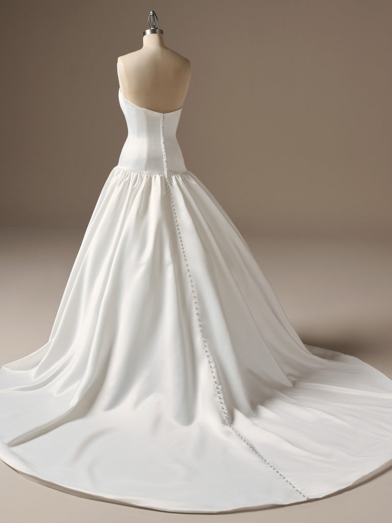 Featuring: Strapless, Straight neckline, Drop waist, Pleating, Ballgown/A-line, Satin/Mikado.